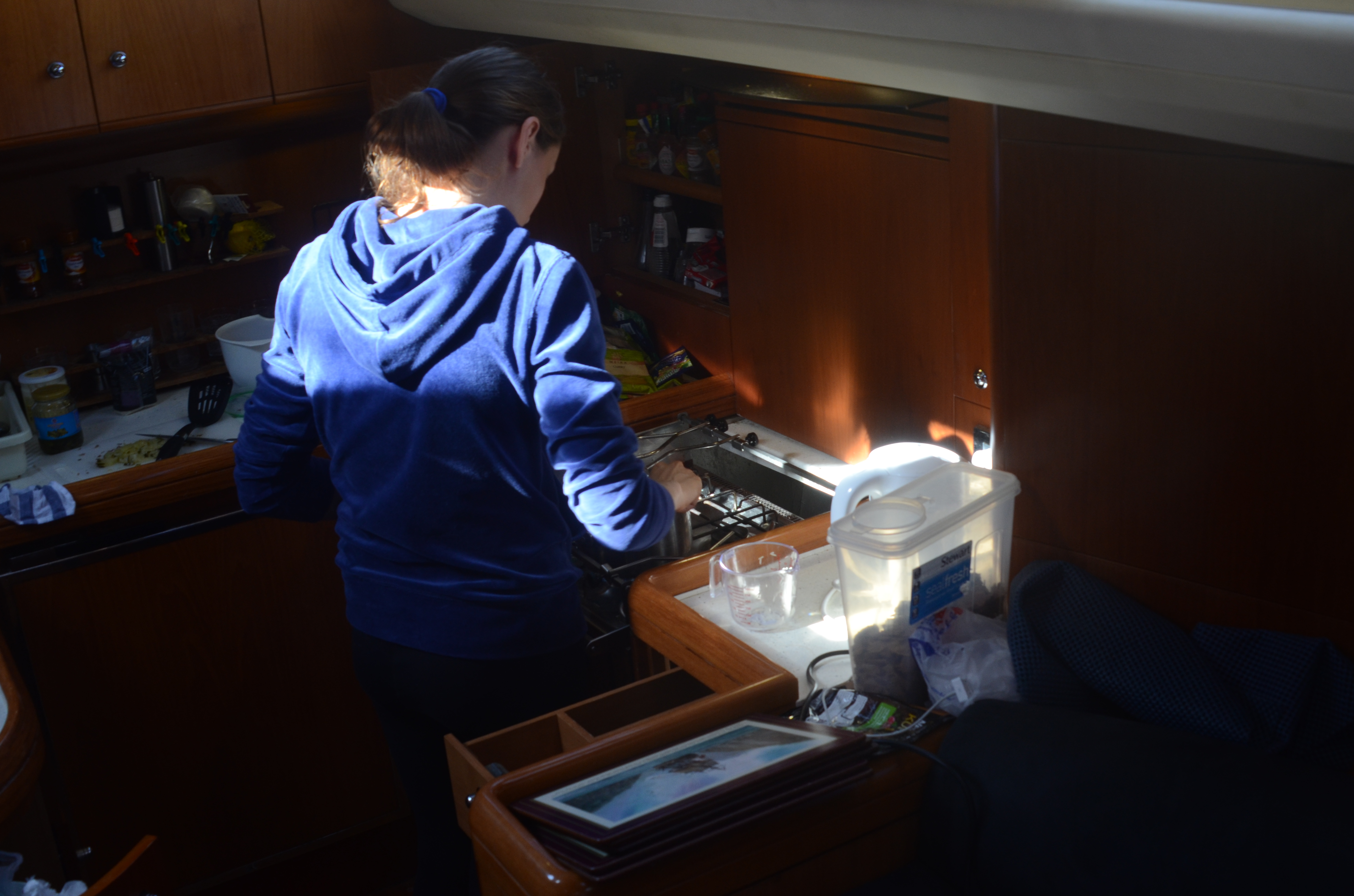 We sailed through the night, always 2 persons in the cockpit, which meant 4 hours on watch, 2 hours sleep, then 4 hours on watch again. We slept in our foulies, just in case the cry of “all hands, all hands” was raised and we were needed on deck immediately.