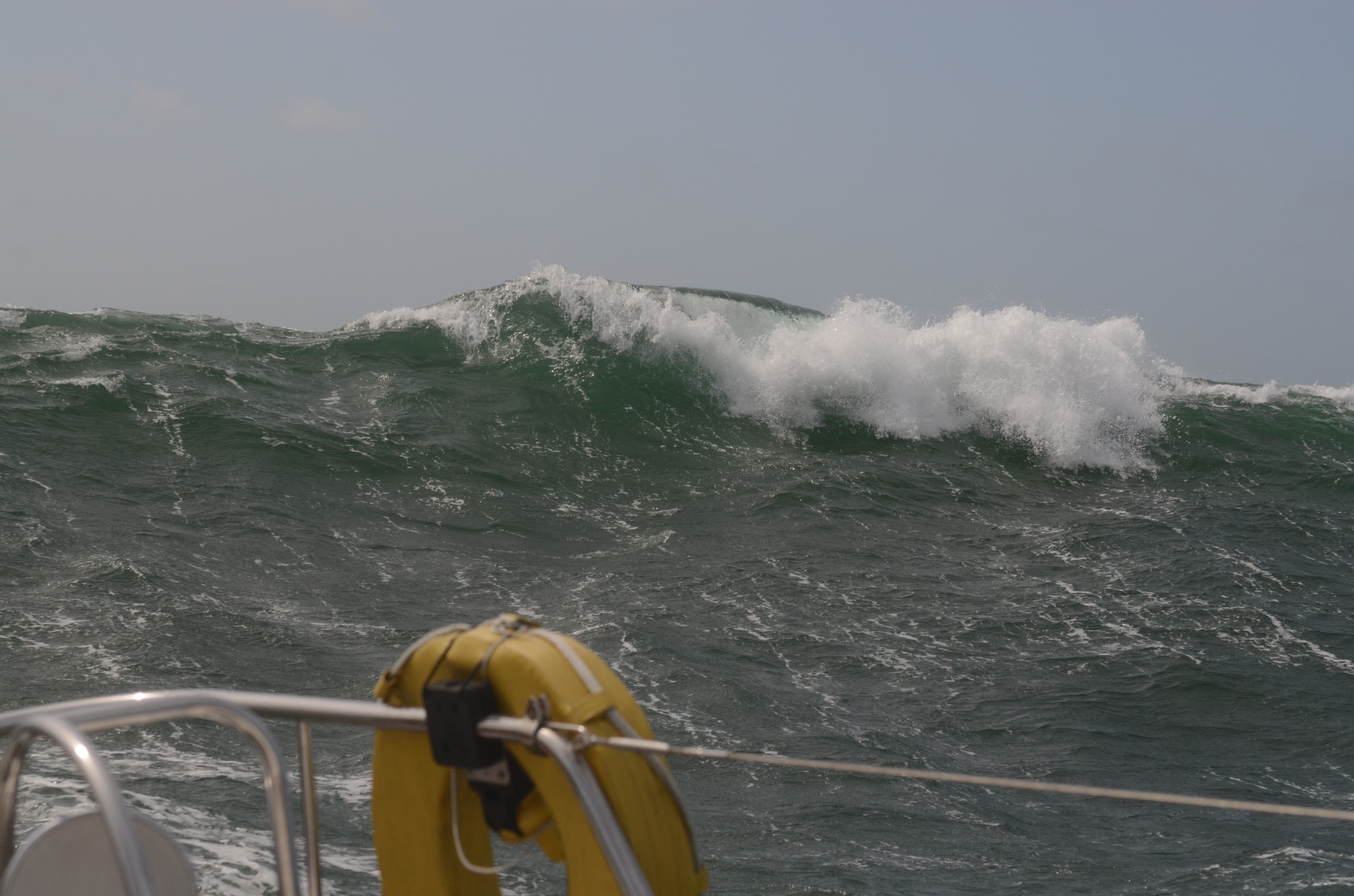Ah yes, the gale. Did I mention that we sailed out into a gale? Oh I did. But I’ll repeat it anyway, we sailed out into a gale, meaning winds of 35 knots and waves of, oh say 3 meters.