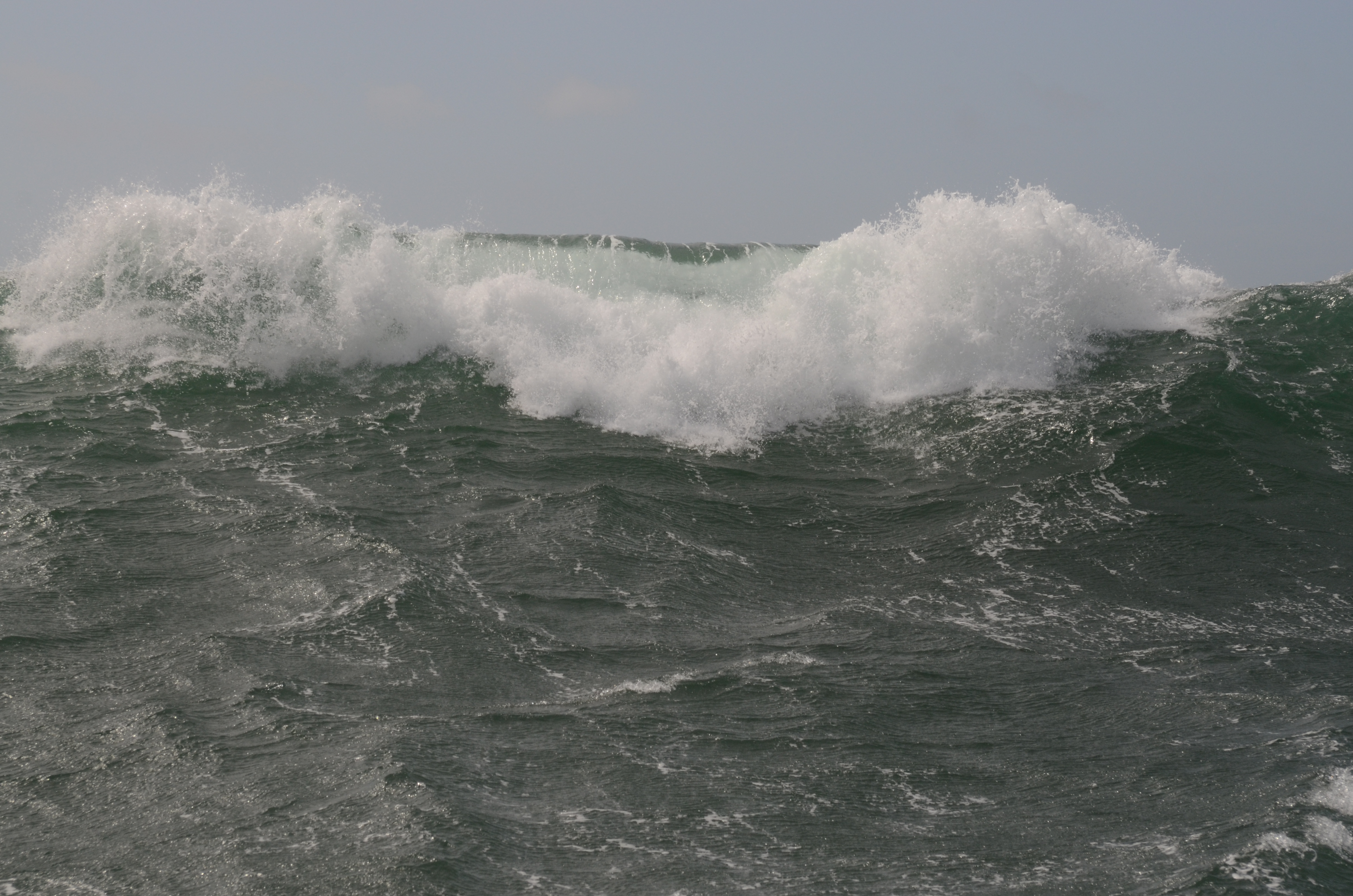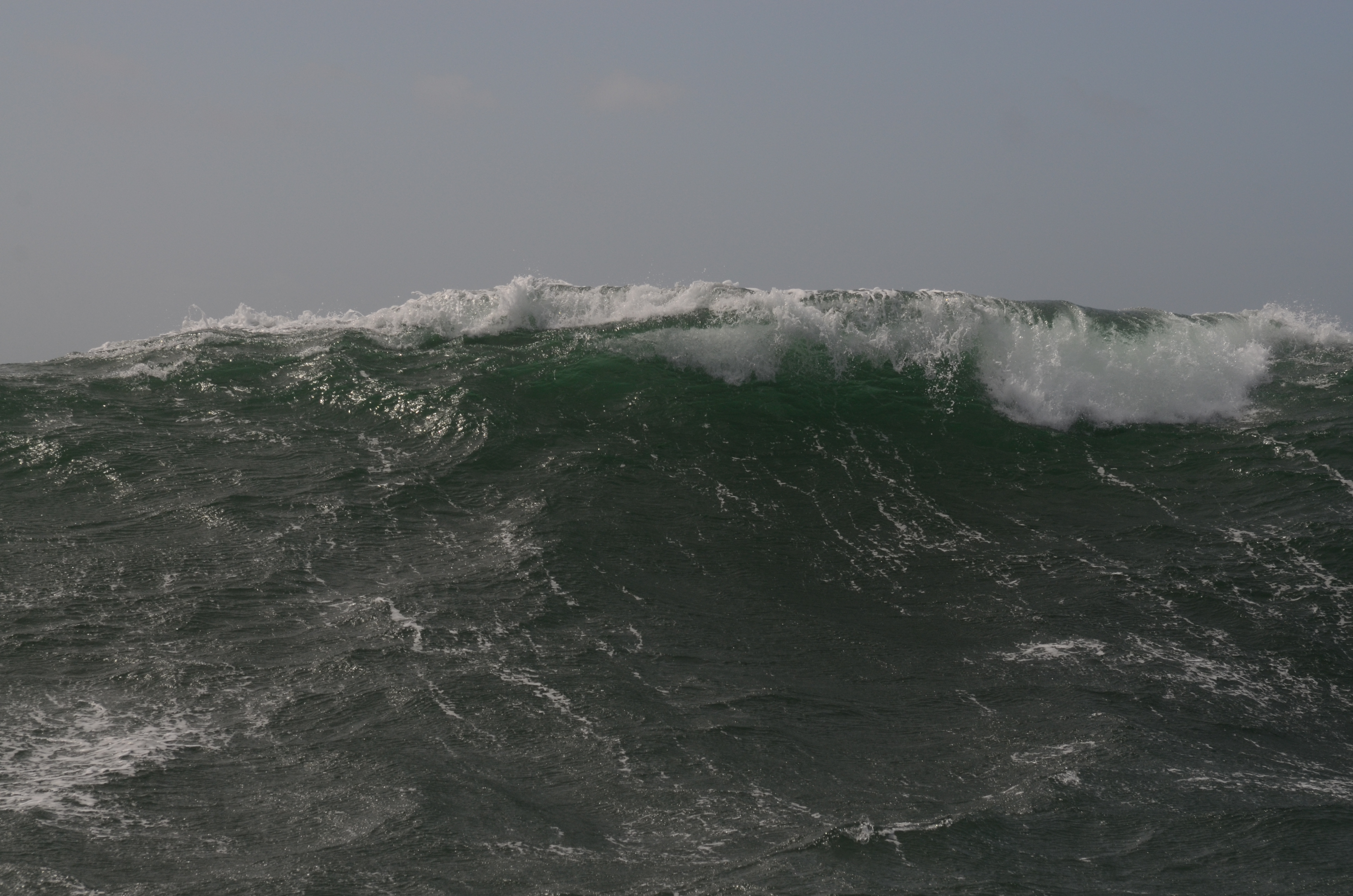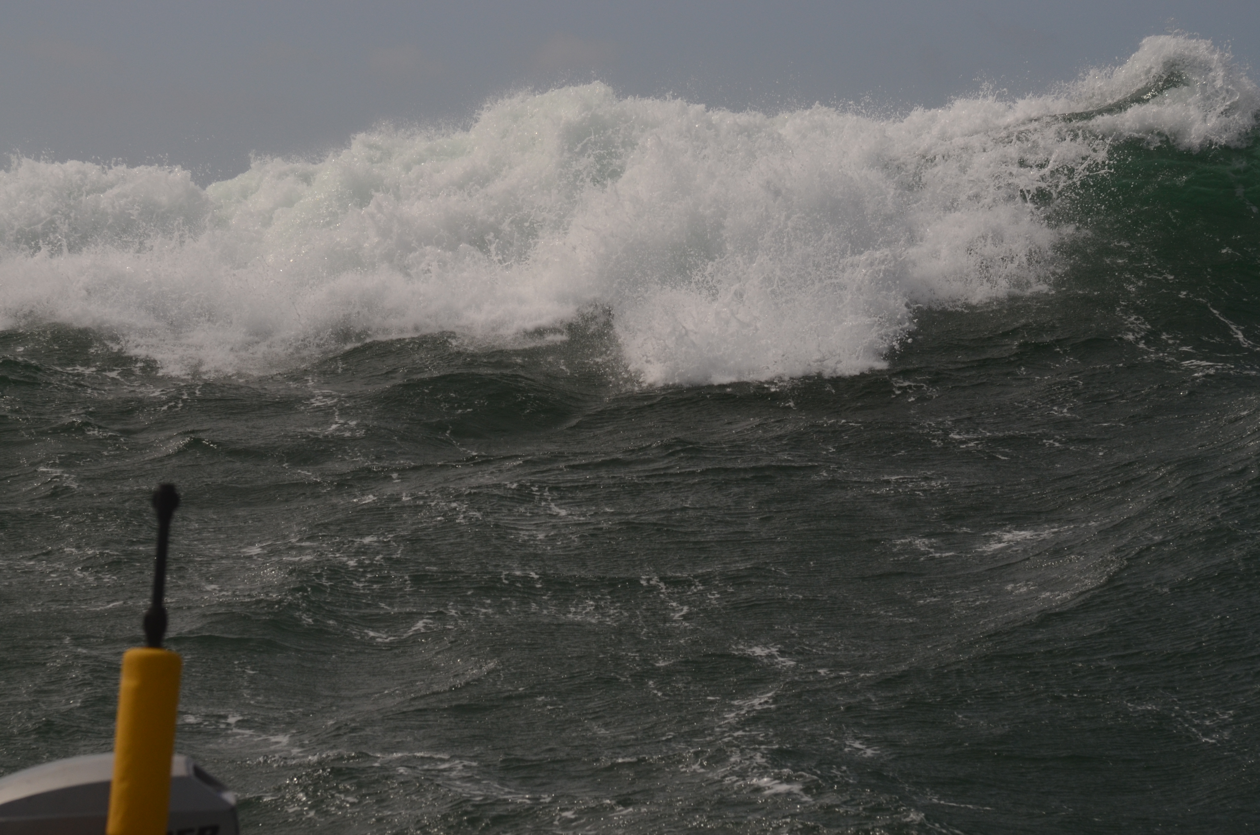 By early afternoon, we were seeing lots of 6 meter waves. To put this succinctly – we were getting the shit kicked out of us. We were cold, wet (everything was wet) exhausted and taking a pounding. It rained occasionally just to add insult to injury.