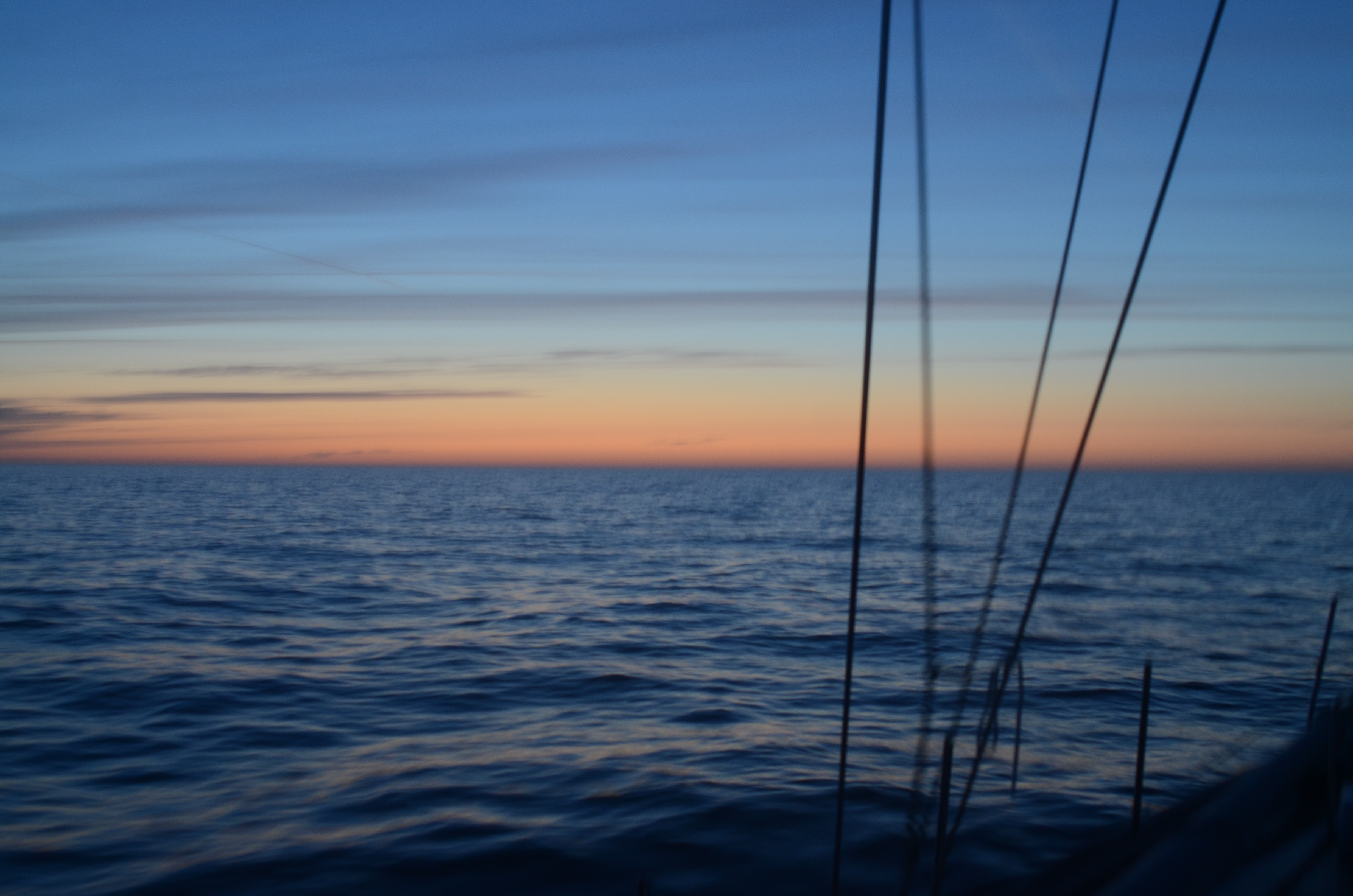 I shall start at the beginning. We decided to sail at 10 pm and as I’ve said previously, everyone went to get some sleep. I woke when I heard the engine start. Seems everyone else had gotten up and they decided to let me sleep as long as possible, since that way I could take the dog watch (midnight to 4 am for you lubberly types).