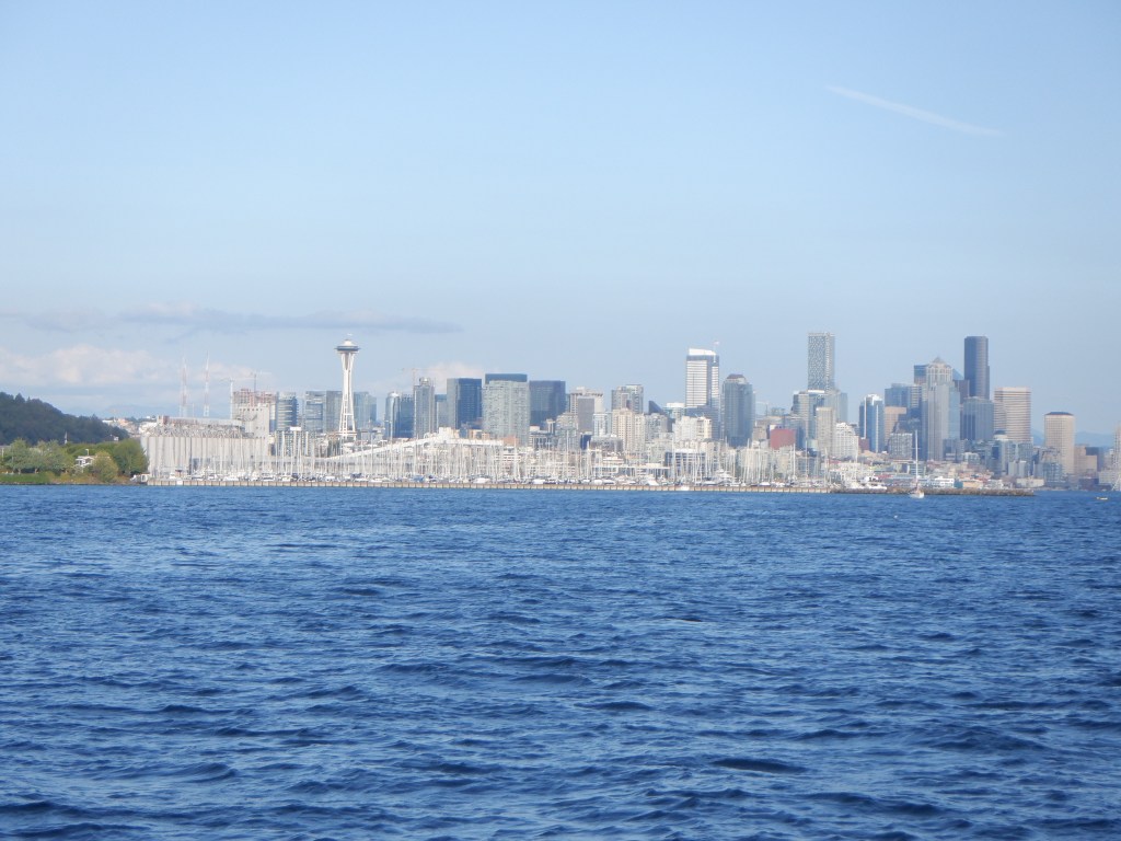 Seattle is 75nm away and we can’t sail that distance with a following tide the entire way. So we leave early and sail against the falling tide the first couple of hours – only 2.5 knots of current against us. We hugged the coastline – frequently the current is less there. Unfortunately, as happens often here, there was morning fog and we ran blind the first couple of hours, navigating via our radar and chartplotter. We can do this, but it is stressful, since there are countless crabpots, small fishing boats without AIS and in these parts, floating logs that have gotten away from a logging operation.