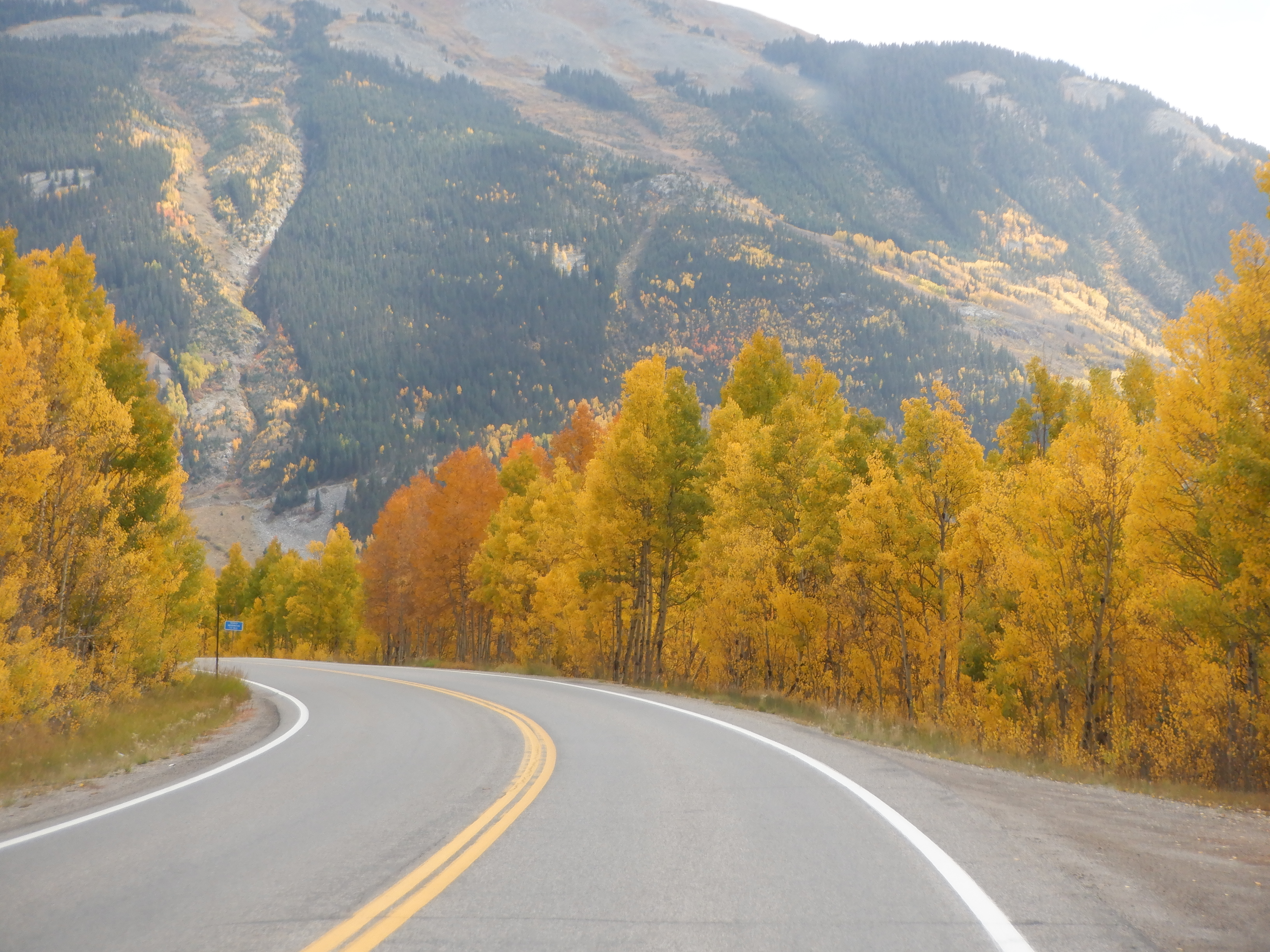 There are, of course, big roads and small roads, one has to remember where we are. This is Colorado. A “big” road here means it is paved. This road is a “big” road and therefore it is paved. We had driven towards the mountains for an hour or so when we pass a sign saying; “Dangerous mountain driving the next 50 miles. No guardrails, steep grades, no shoulder. Trucks and wide campers are advised to turn back. Tight hairpin turns and switchbacks next 50 miles”.