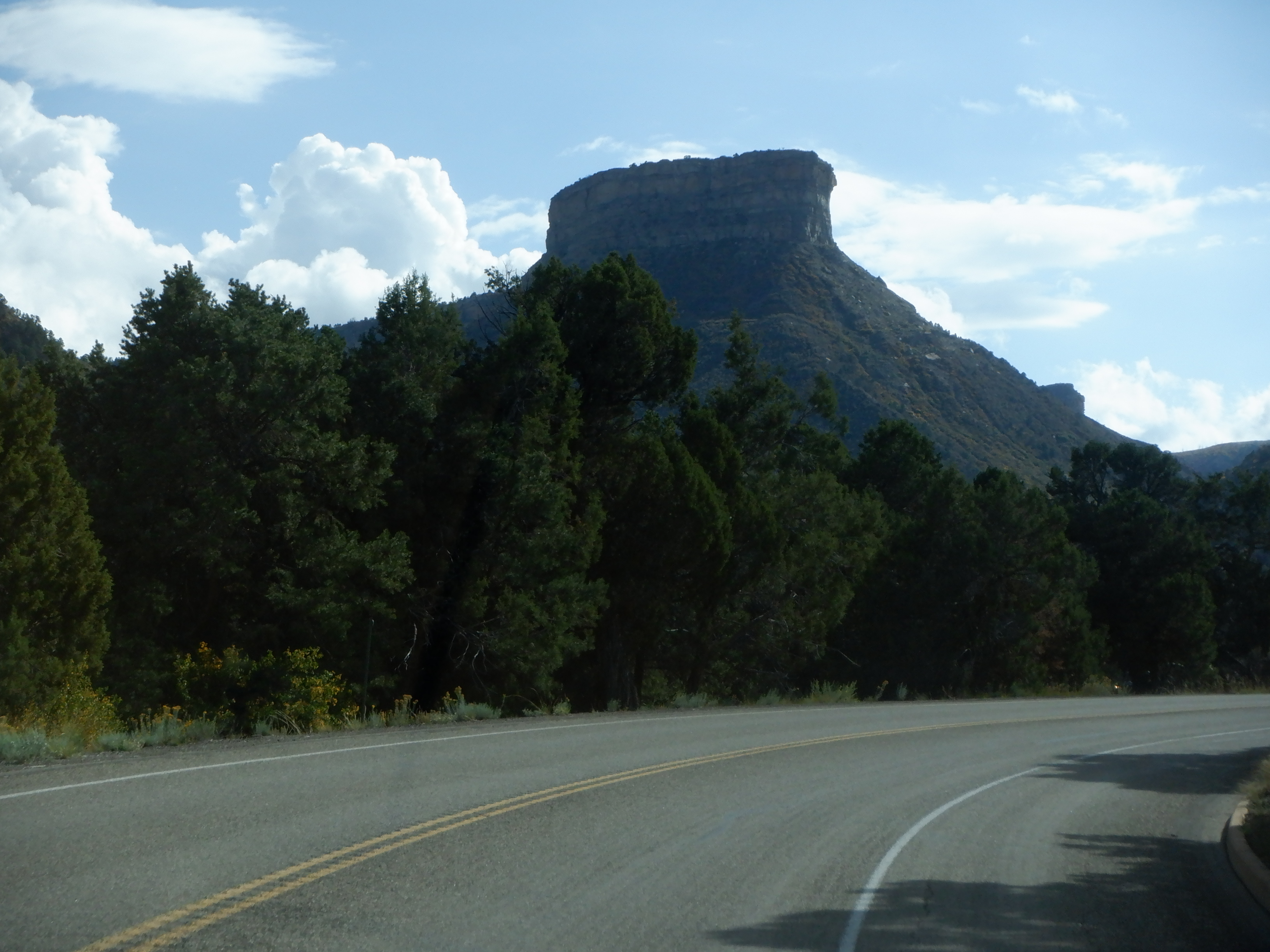 Mesa Verde means “Green Table” in Spanish and it is easy to see why it was so named. Throughout the eons, the winds have blown the top of the mountain flat; with a little good will, it looks like a table.