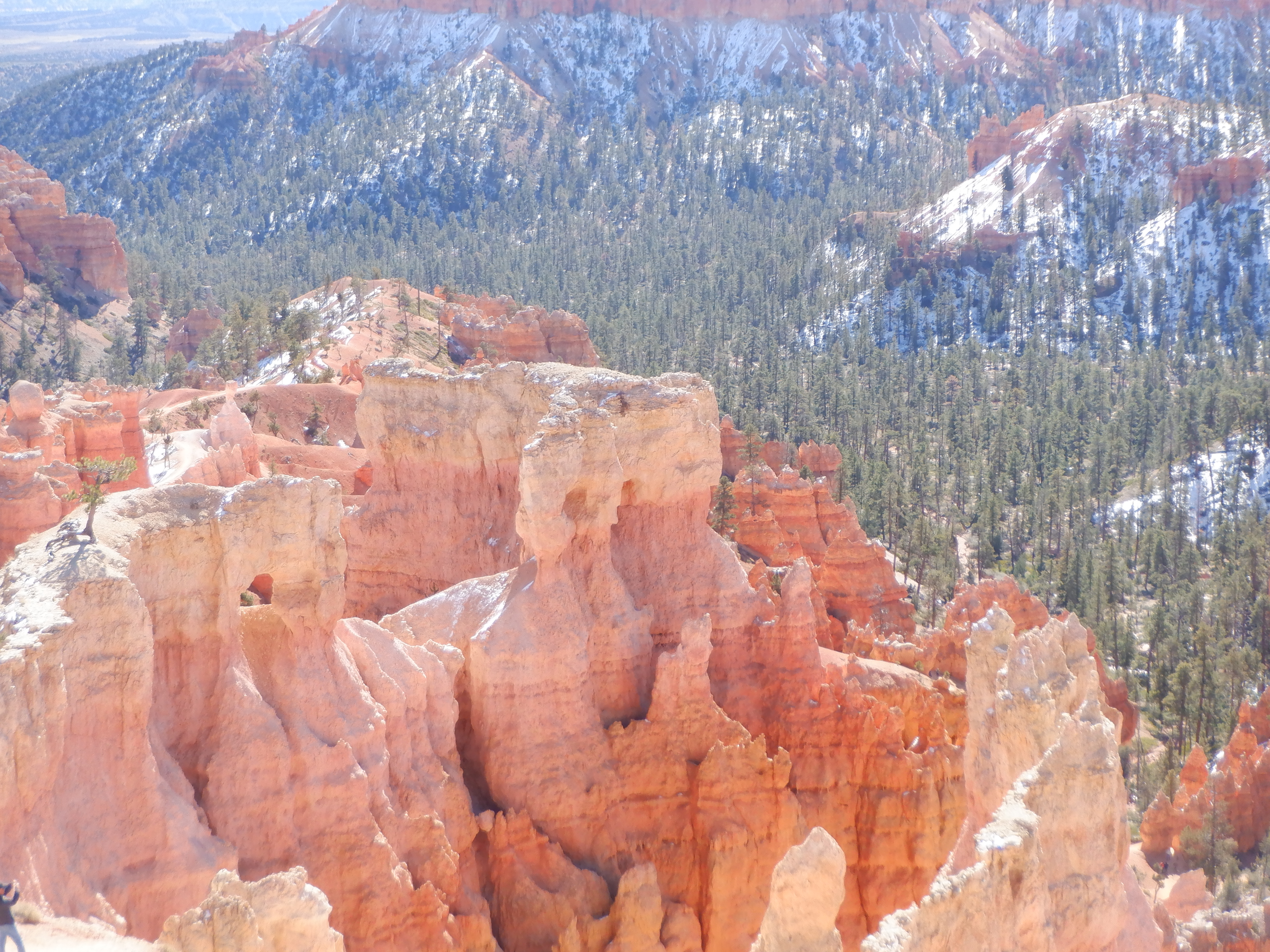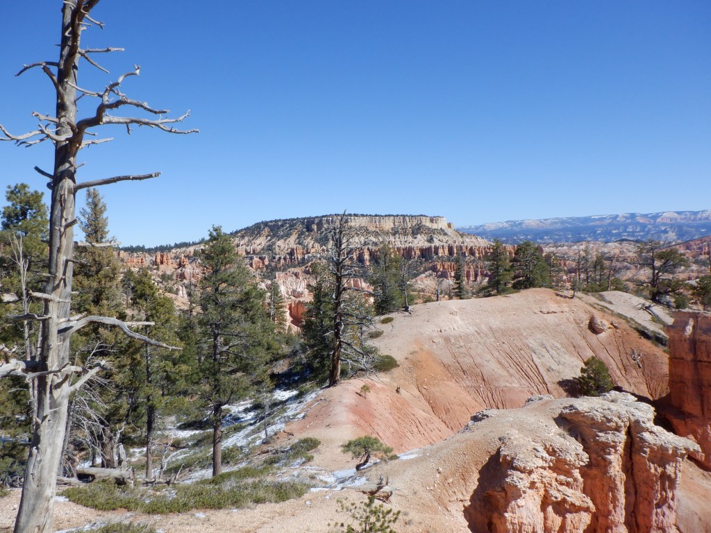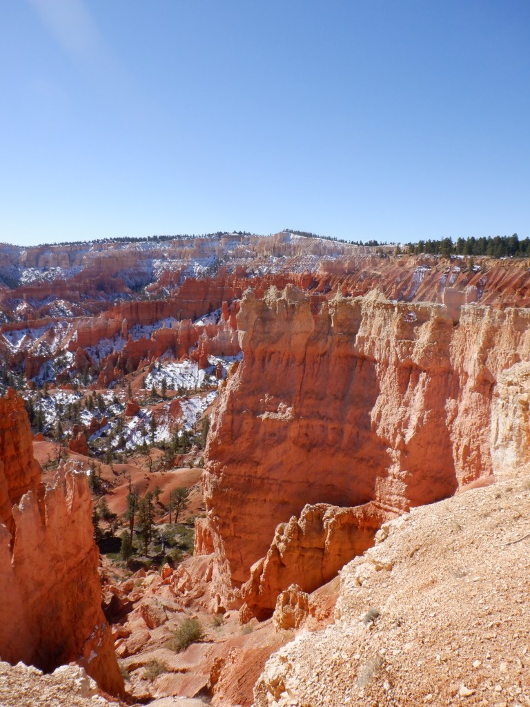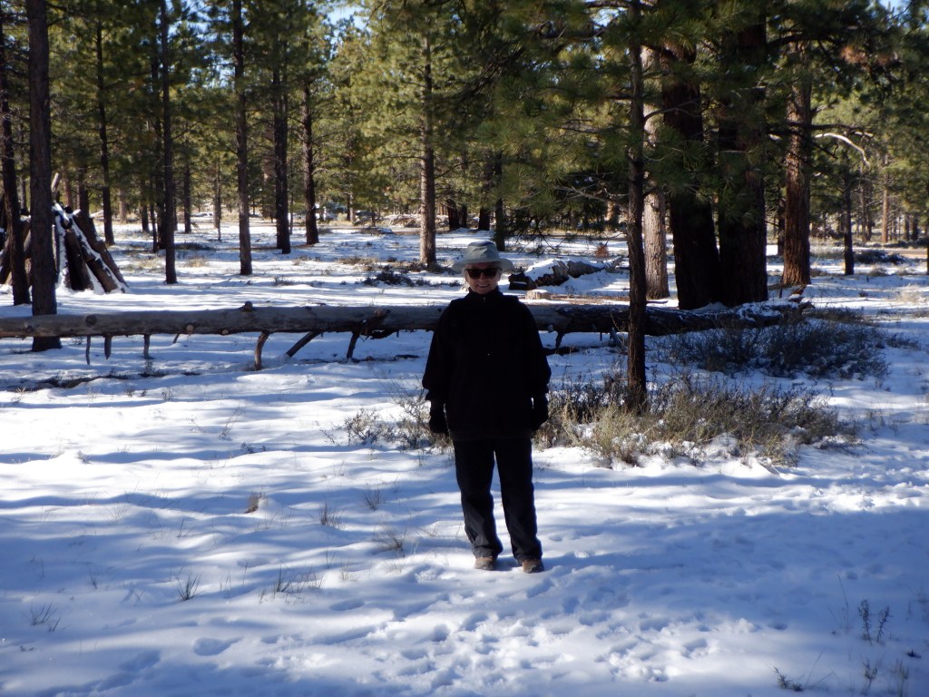 Bryce lies at 8-9000 feet (almost 3 kilometers). The air is thin up here and we can feel it as soon as we do anything other than sit still. It is also cold, there is still snow here and the temperature at night will fall to minus 8-10F. Daytime temperatures are in the low 50’s – although this is in the sun. We barely have the right clothes for this kind of weather.