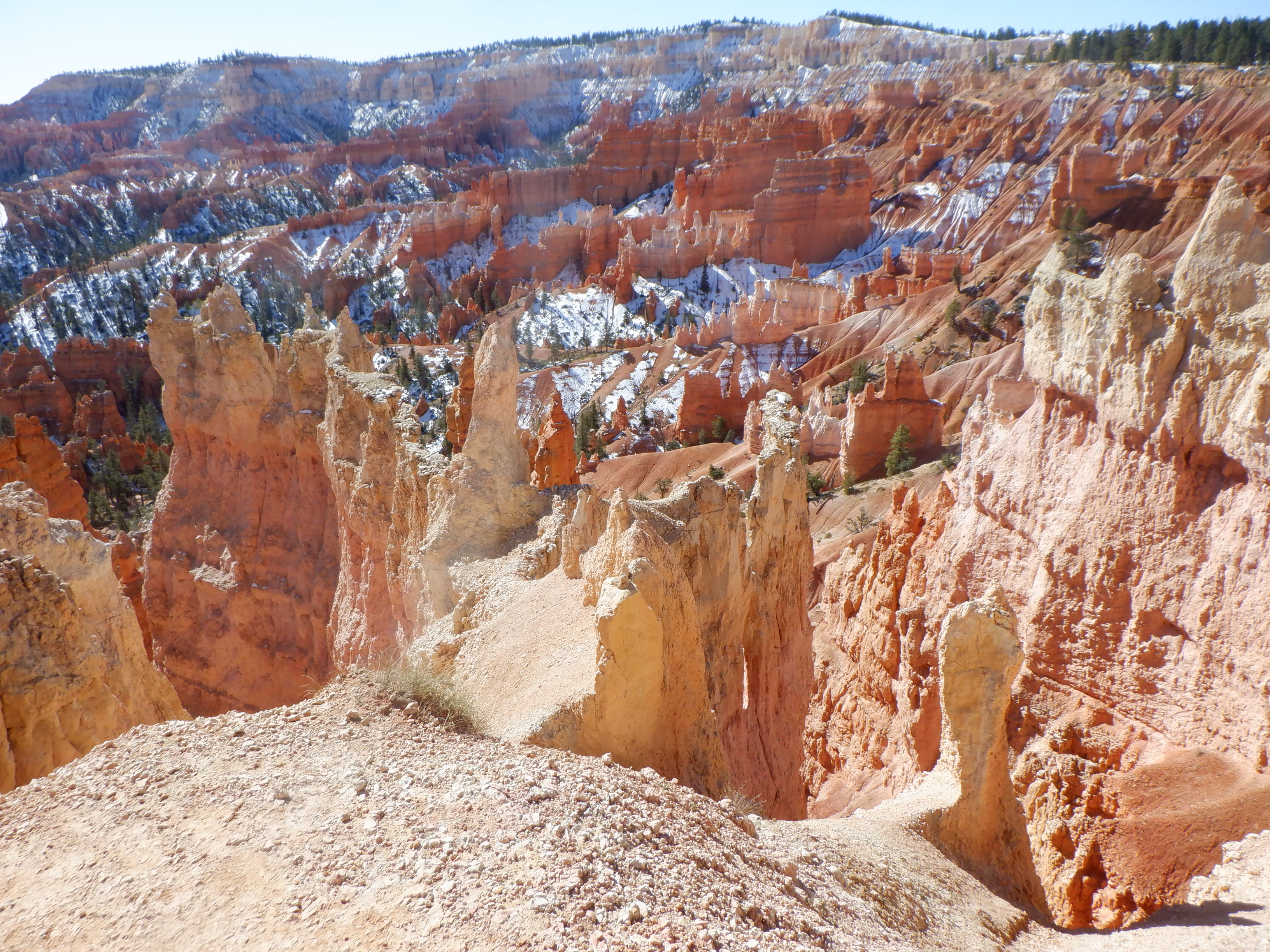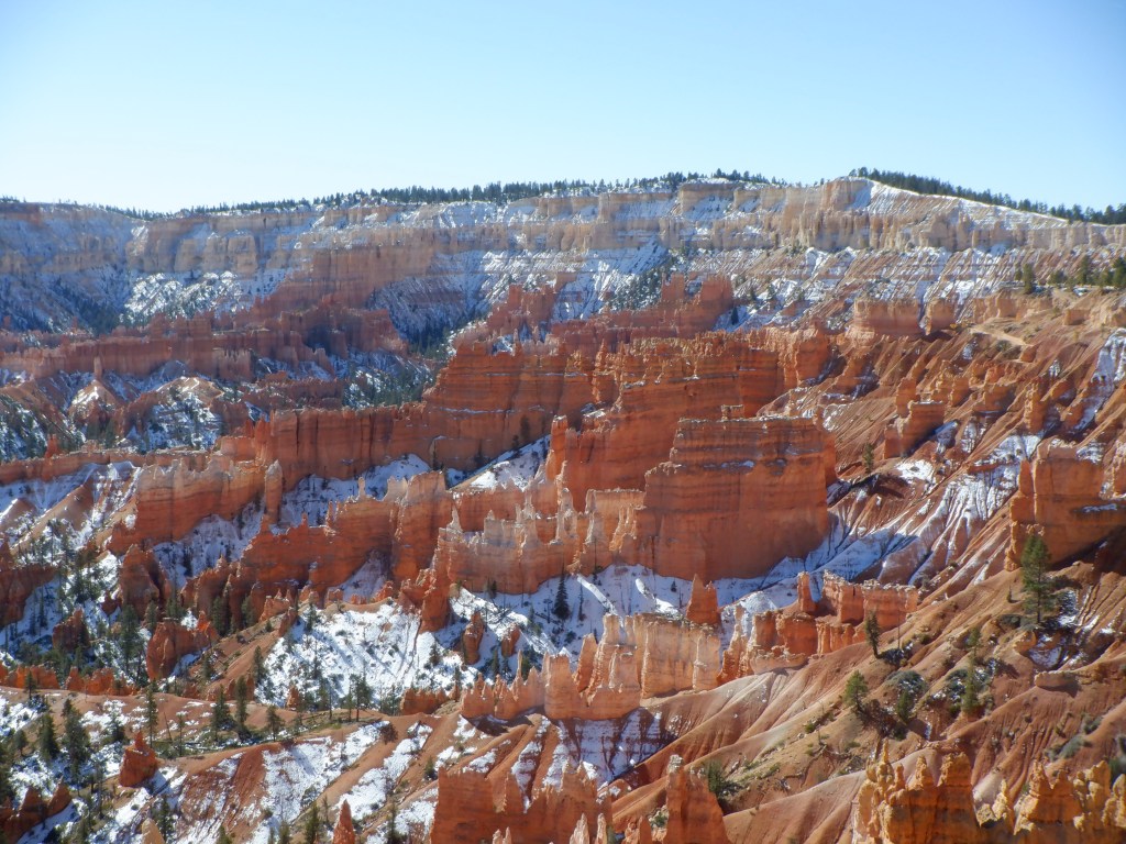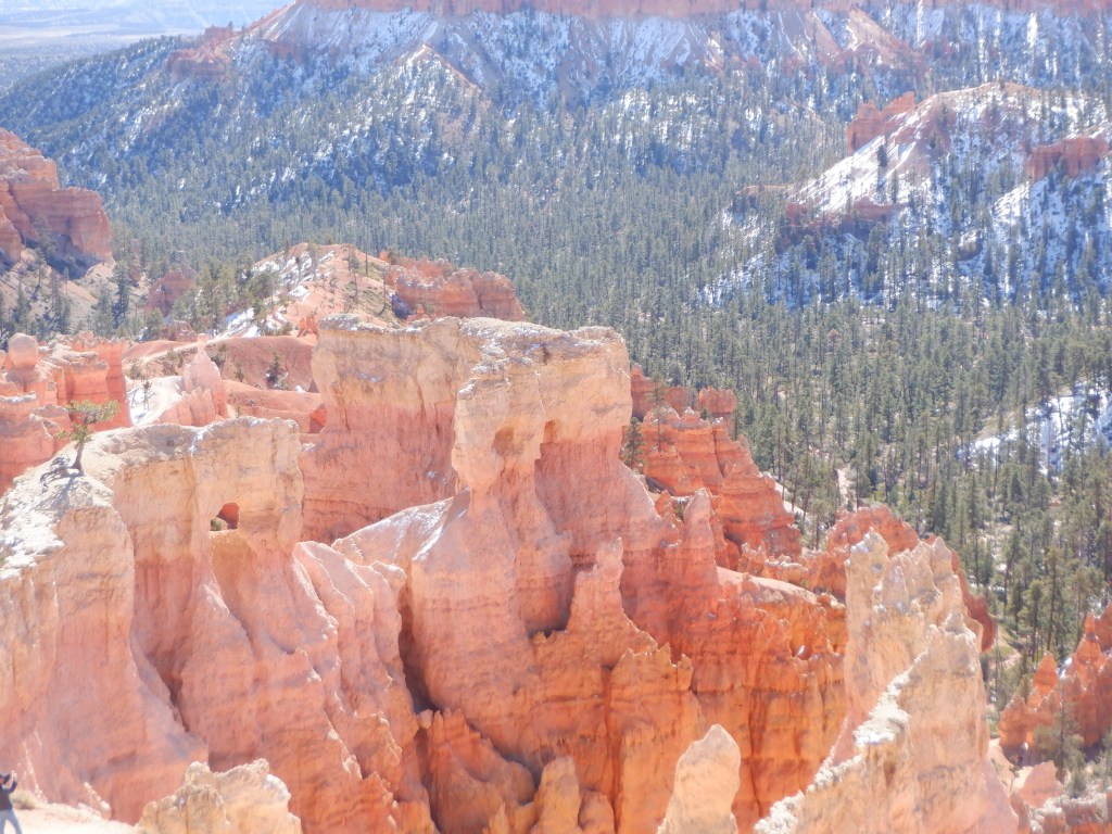 After 3 days, the weather begins to warm and the snow starts melting. We rise very early and drive the 60 miles or so to Bryce Canyon National Park. Bryce is named after a pair of Mormon homesteaders, Ebenezer and Mary Bryce that settled here.