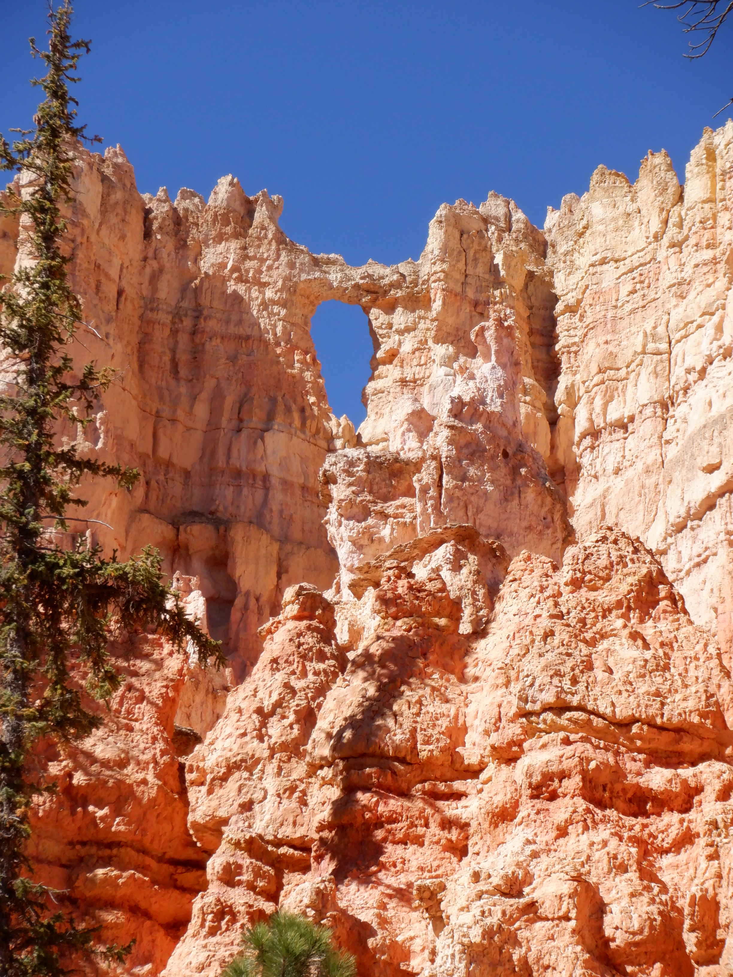 Bryce Canyon, despite its name, is not a true canyon in the scientific sense. A canyon is formed by a river eroding its way down through the ground and creating a deep cleft in the earth (Grand Canyon, Black Canyon et.al.). Bryce has been formed by rainwater and snow run-off seeping down into the porous rock. When the water then freezes, it expands and literally blows some of the rock away. Bryce ahs close to 200 nights per year where the temperature drops to below freezing. The waters have been seeping and freezing here for hundreds of thousands of years, finally creating that which we see today.