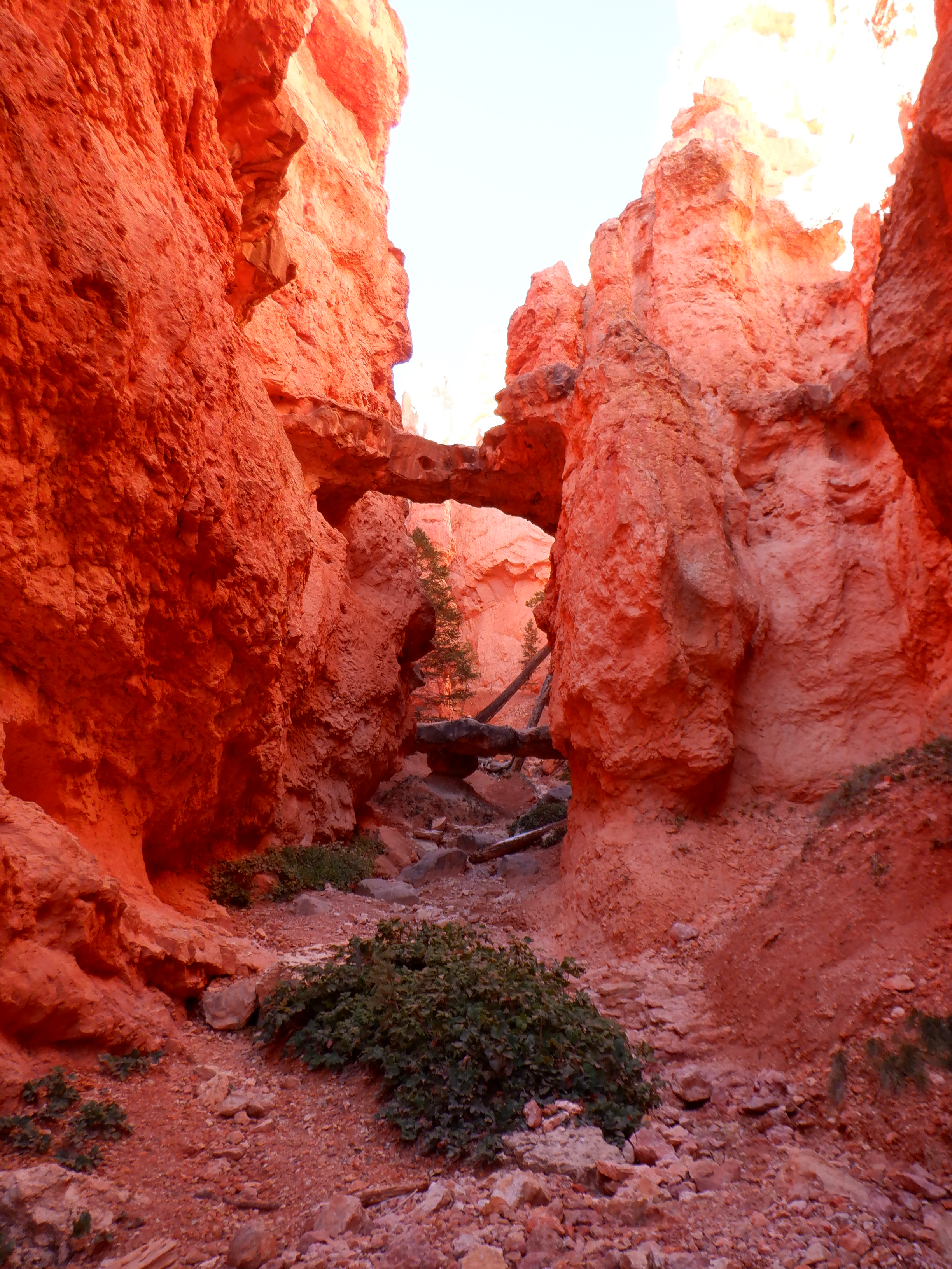 When we reach bottom, we a sign pointing to another trail, “Peek-a-boo”. Taking Peek-a-boo is ony a short detour of 4-5 miles. As we stand looking at our map, a middle-aged couple comes up to us and asks if we are looking for the way to Peek-a-boo. We’re not, we say, we’re discussing if want to trek it. Is the trip worth is I ask. Absolutely, is the immediate answer. Definitely worth it.