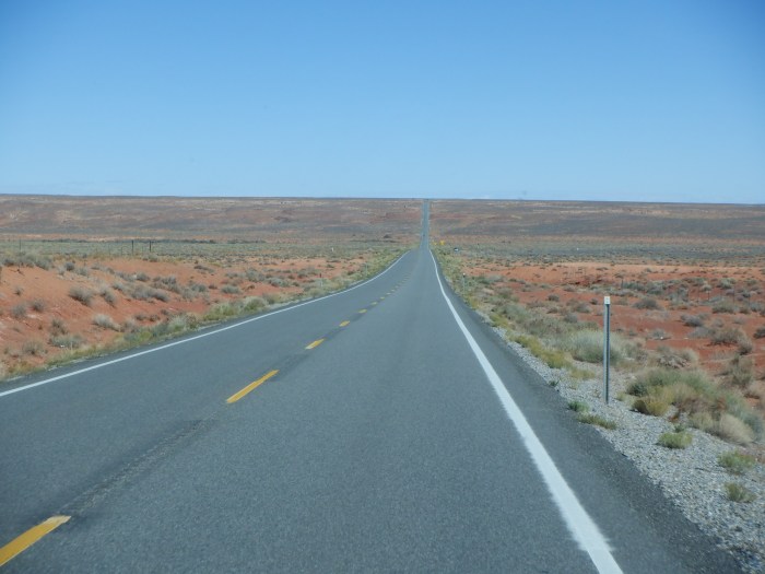 Early the next morning, we roll out of Page and enter the huge Navajo reservation located in the northeast corner of Arizona. We will drive almost 300 kilometers across this empty reservation before reaching our next goal – Monument Valley. The landscape surrounding us all morning is desolate, brown and rock-filled. It seems as if no one lives here except perhaps the rattlesnakes.