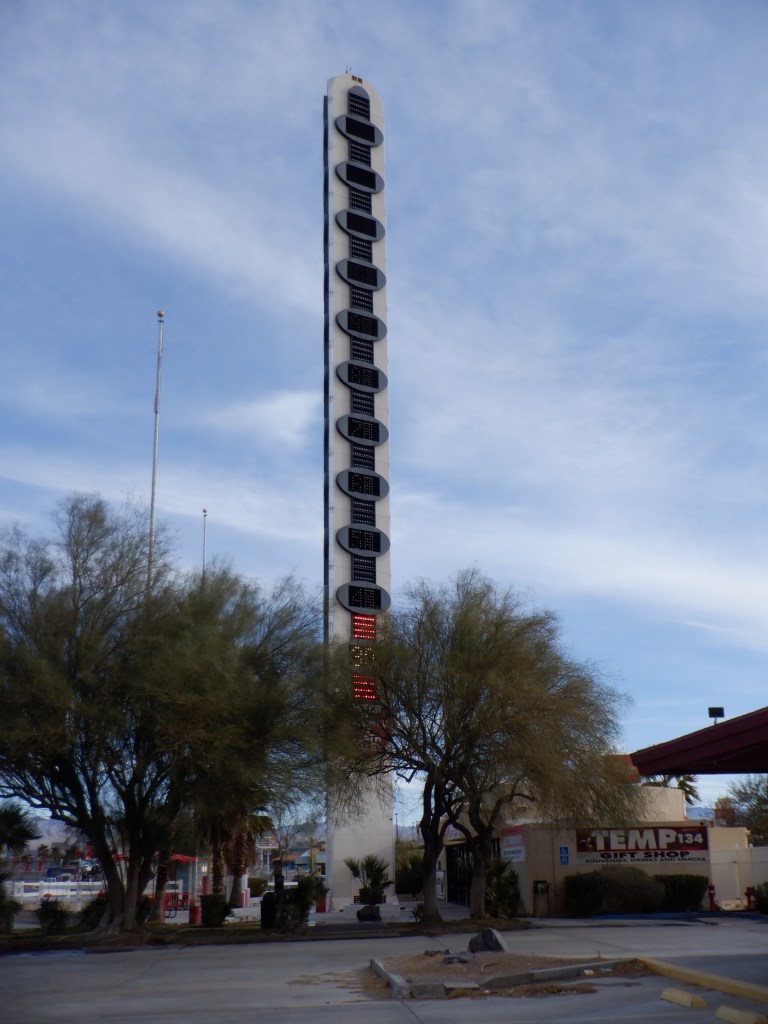 Aside from the rocket car, the town we stopped in had a strange claim to fame. They purported they had the world’s largest thermometer. A 134-foot high thermometer to be exact. Why 134 feet? Because the highest temperature ever measured in the continental United States was 134 degrees, measured in Death Valley. Every town has to have a claim to fame – the thermometer was the claim here.