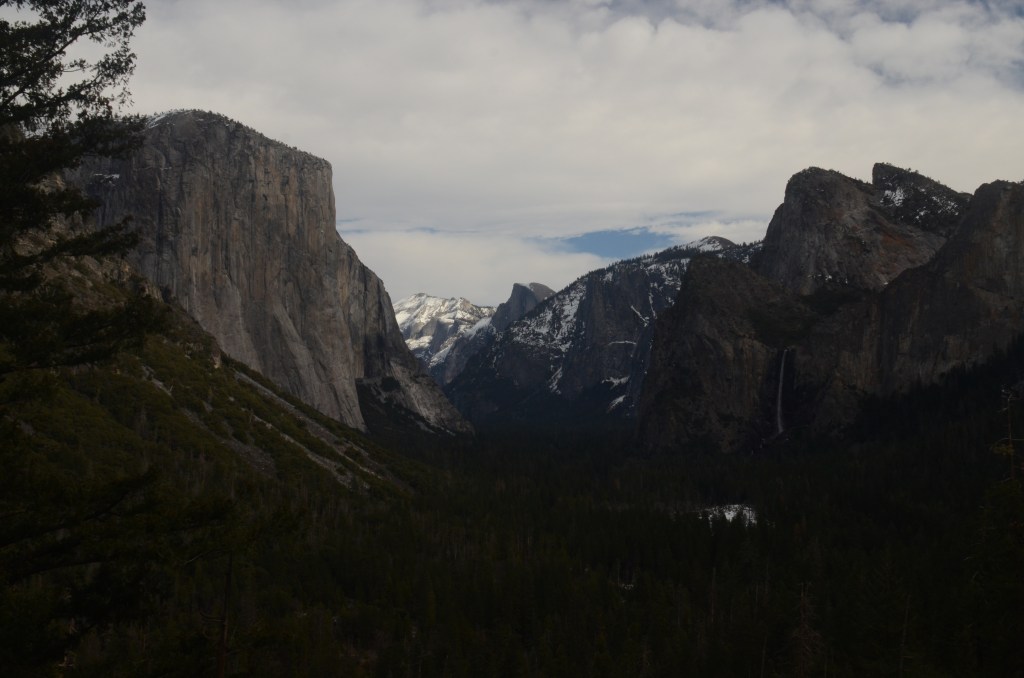 The next morning we drive back up into the Sierra Nevadas on even smaller roads and even more hairpin turns. I get carsick again but fortunately not as much as yesterday. We enter the park through the southern entrance and drive about 30 miles before coming to a tunnel that leads into Yosemite Valley. The view as you exit the tunnel leaves breathless. Ansel Adams stood here and took some of his most famous pictures.
