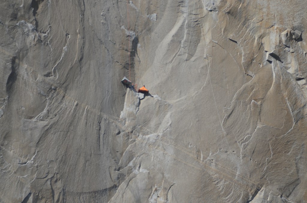 El Capitan can’t be climbed in one day so these two climbers have “pitched” their tents halfway and are getting ready to spend the night. I can only hope they don’t roll over in their sleep and fall out. ( I know they have strapped themselves in – but seriously).