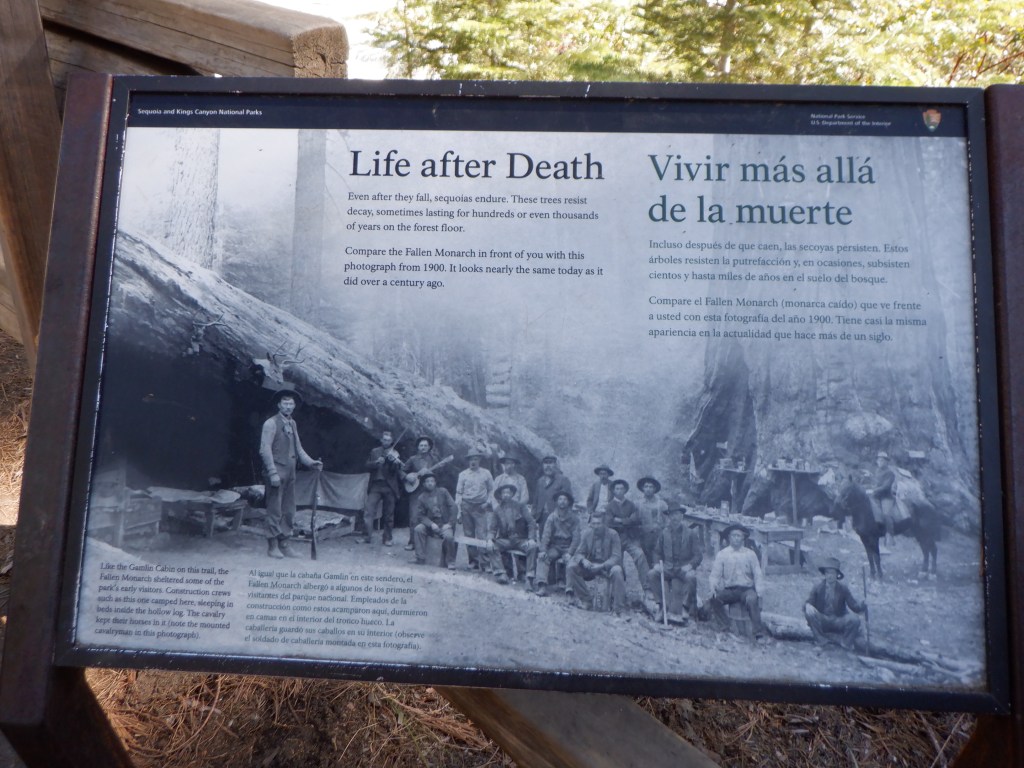 The Giant Sequoias can grow old. Very old. Some are over 3000 years old. Even after they die and fall the trunk and the thick bark remain for many years.
