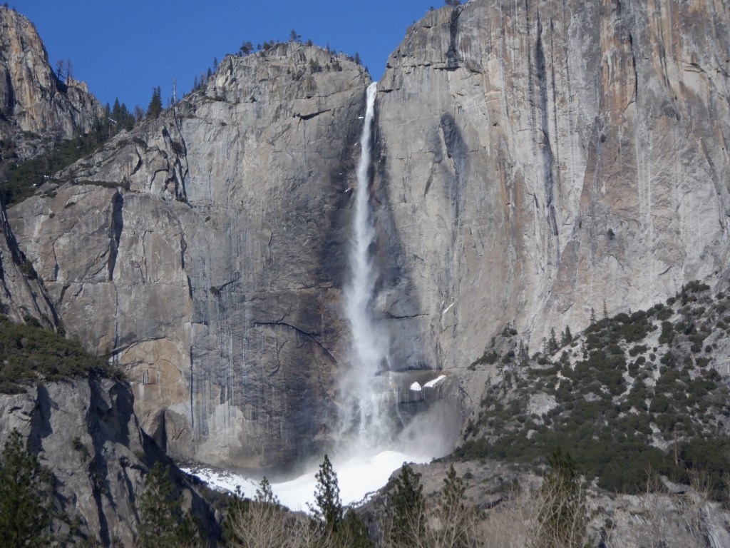 Yosemite has an abundance of hiking trails but it is winter and there is snow everywhere. We give up on the idea of hiking through the park and drive back out through the west entrance. The drive back is longer (100 miles) but very few hairpin turns and I didn’t get carsick.