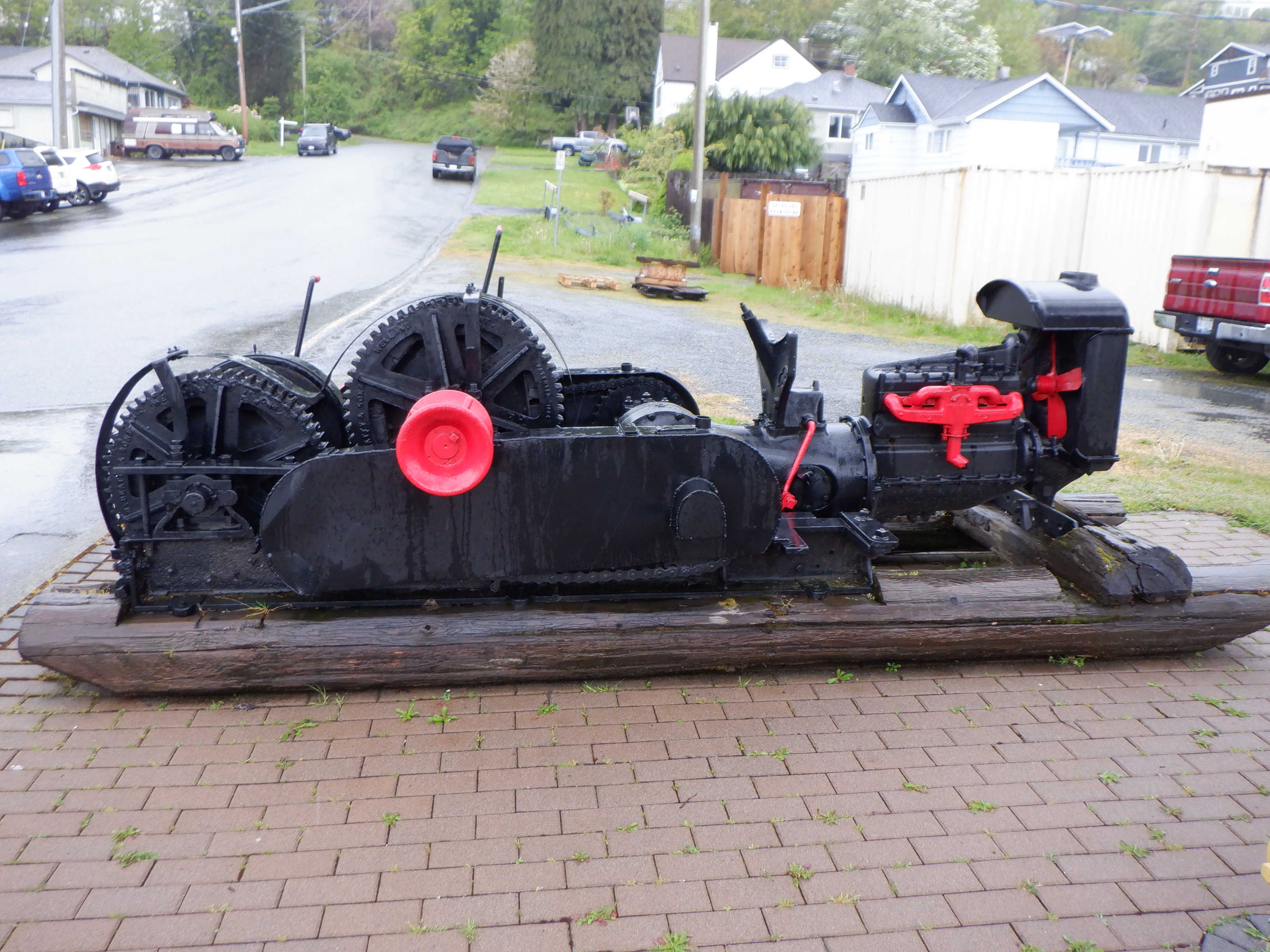 Ladysmith is an interesting little town. “The town time forgot” is how they bill themselves. The town was founded in 1898 as a coal mining town. Virtually the entire town arrived on the train and was just assembled in a few weeks. Since there was also a copper mine nearby, the town thrived. Both the coal and the copper petered out, but the logging industry survived and thrived. There are two sawmills here in town and the logs arrived both on trucks and by water. Small tugs tow enormous rafts of logs across the bay.
