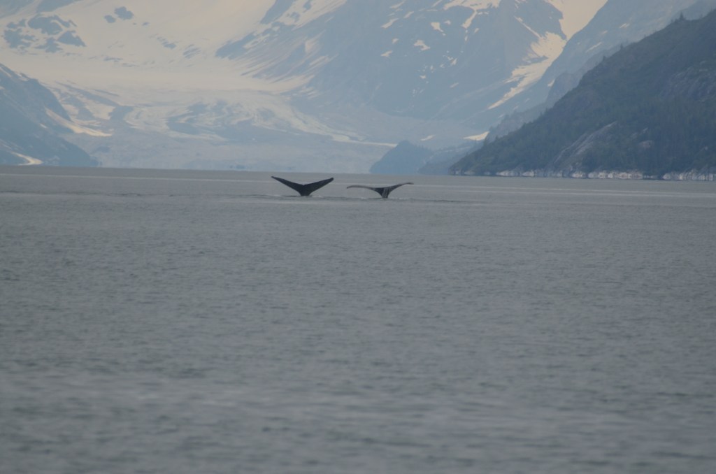 June 21st and we took in our lines to sail the twenty-fine nm from Hoonah to Glacier Bay. Visitors to the Bay are strictly limited, the better to protect the marine life and the fragile environment. We are one of the lucky boats that have gotten permission to sail the bay for seven days. The first twenty miles into the bay are a protected whale area and boats are strictly enjoined to stay in the middle of the passage, since the whales frequently feed in the shallow waters at the edges. We been instructed to stay a minimum of one nm from the coast as we sail towards Bartlett Cove where we have to register with the Park Rangers. As we close on the Ranger station, we hear them on the VHF scolding another boat for being only 0.85 nm from the coast. The Rangers order him to change course immediately or face a fine.
