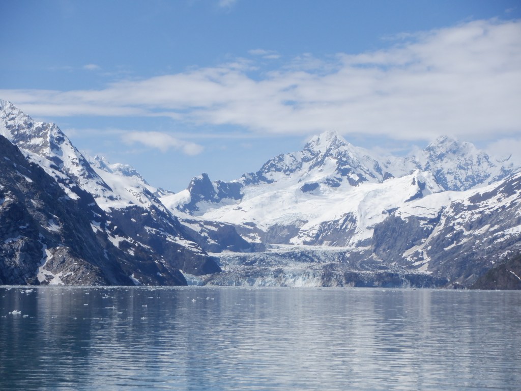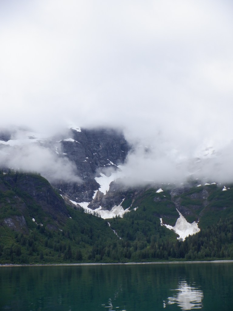 Not as impressive as Tracy Arm – but still. On one side of the boat, we are looking at the Glacier, the other side we are looking out across the bay at the snow-covered mountains dominating the other side of water. This a view that you can’t buy for love nor money.