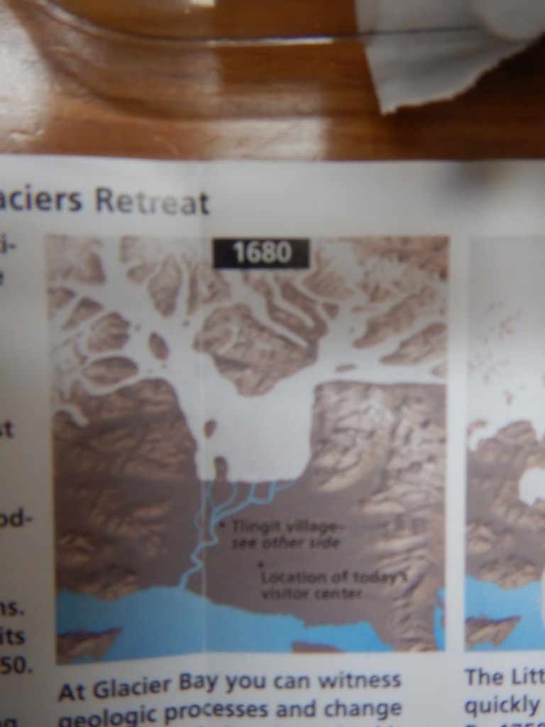 Glacier Bay is a relatively new area, geologically speaking, since it has only existed for something like 250 years. Before that, the area was one big glacier. Glacier Bay is a product of “the little ice-age” that reached its maximum extent here around 1750. As described in our blog about Hoonah, the Tlingit lived here until the encroaching ice forced them to move to the other side of the straits and found Hoonah. In the summer, the Tlingit fished, picked berries and hunted. In those times, the Glacier did not extend all the way into Icy Straits.