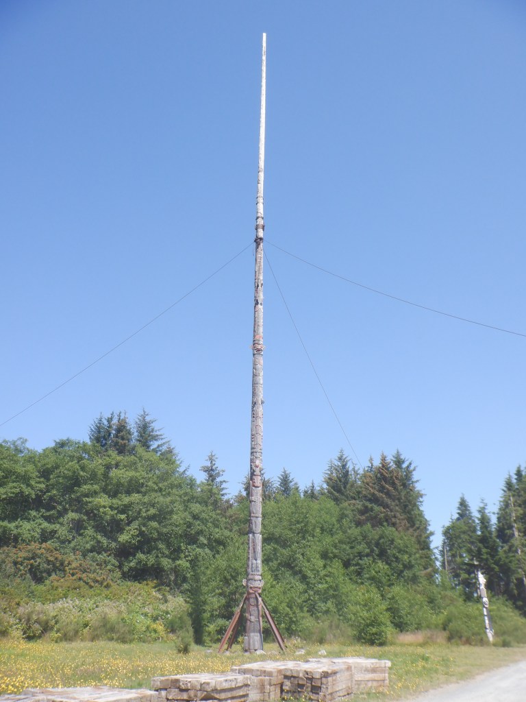 As you can see, many of the poles have fallen and lie neglected on the ground, just as many of the standing poles show clear signs of neglect and zero maintenance. The ‘Namgis believe that the pole contains the spirit of the departed. When the pole falls, the spirit has left. Therefore, the poles are not maintained and once they have fallen, they are allowed to just lie there and decompose. If you look closely at the pictures of the cemetery, you can see several poles that have fallen.