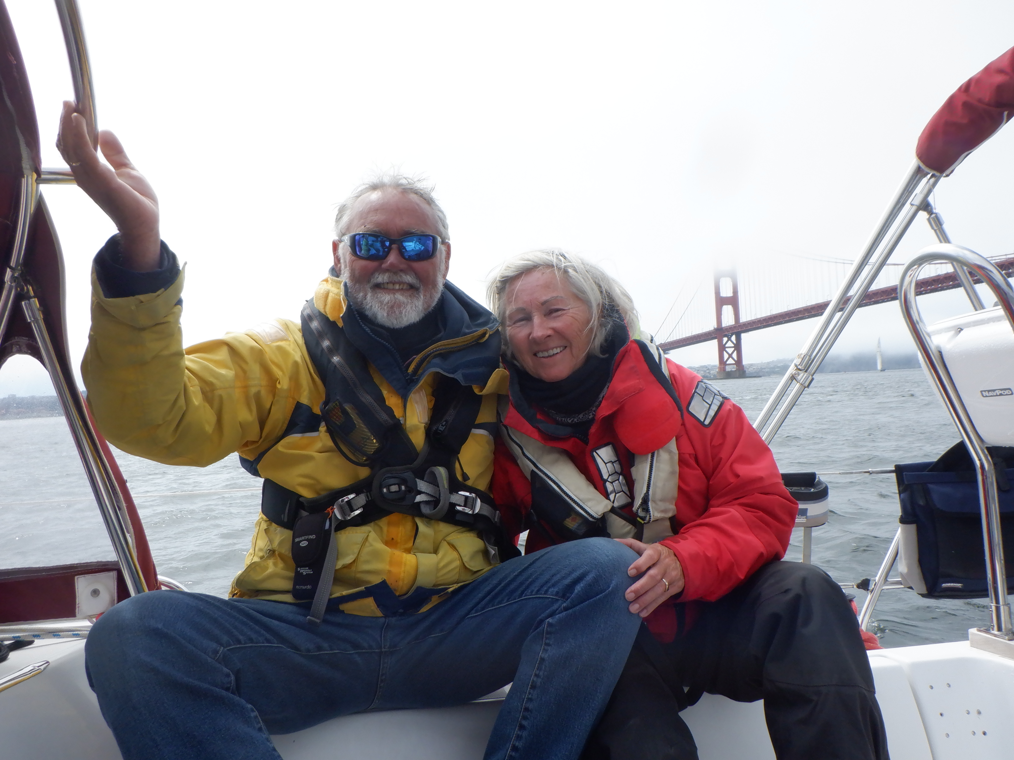 We did it! Sailing under the Golden Gate Bridge and we can now say we are amongst the very few sailors who have sailed into both New York harbor and San Francisco Bay – in the same boat!