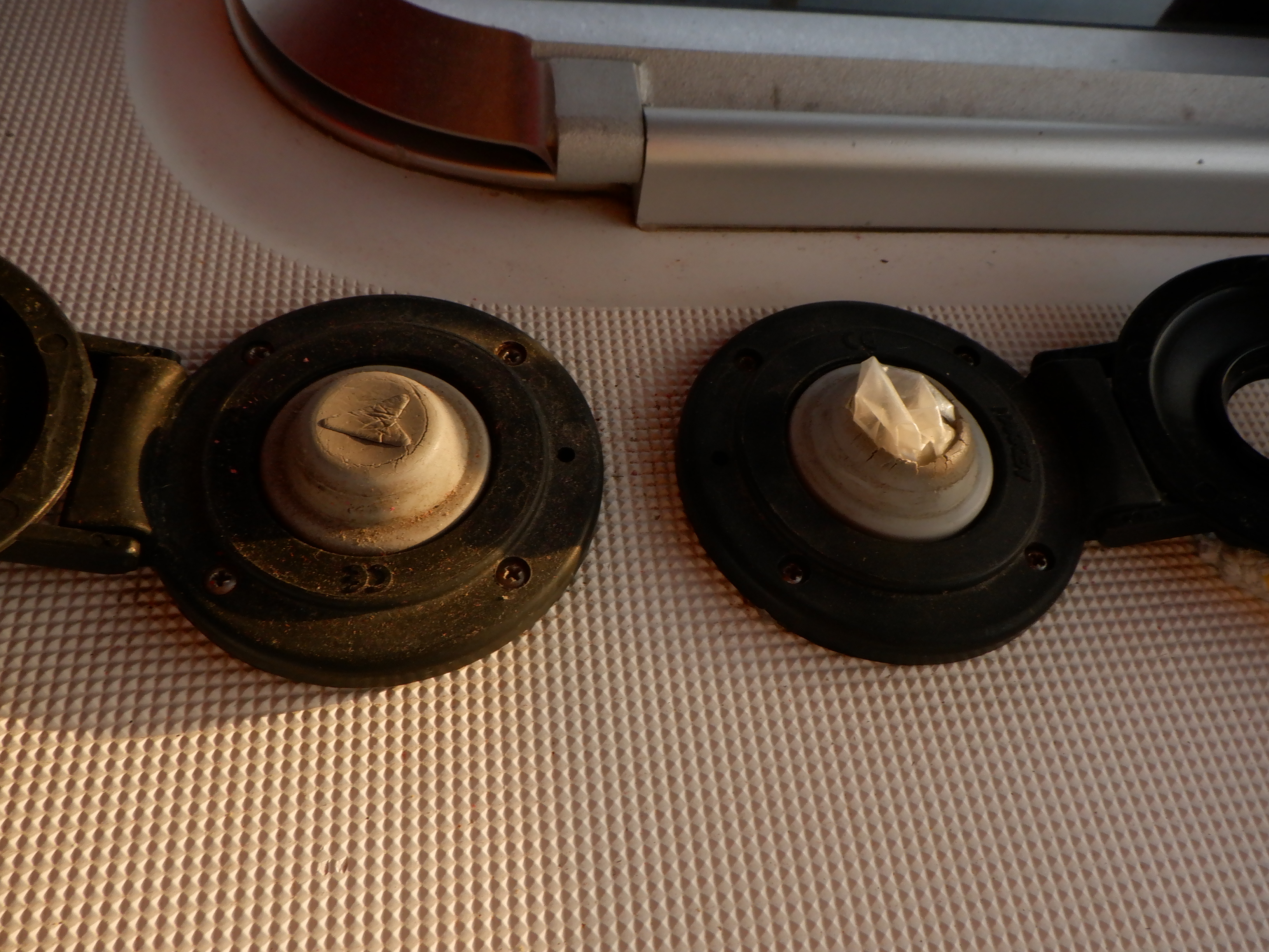 Another small item – these switches control our electric winch. After seven years of sun/salt /wind/rain, the rubber is deteriorating. So we need a couple of new rubber covers. I have no idea what these will cost, but I’ll have to get them in Denmark.