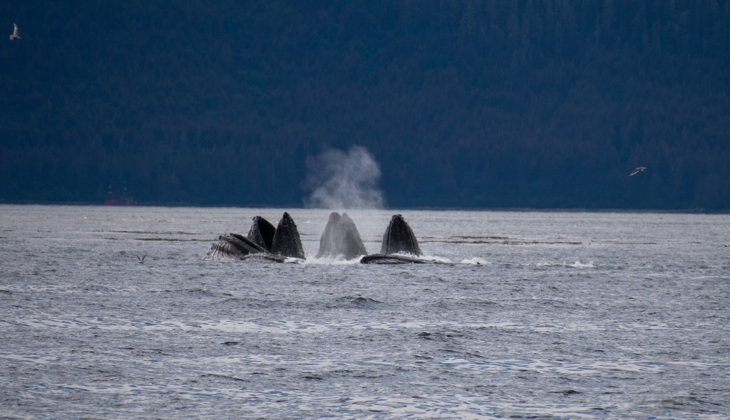 Whales bubble feeding, Alert Bay, Pack Creek bears, Arctic – Capri in front of a glacier, Glacier Bay, a waterfall we anchored in front of – somewhere in northern Canada