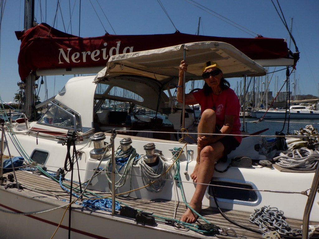 It is not every day you meet one of these unique people so we searched around the marina and found her boat, Nereida (Nijad 38). We knocked on the hull – I don’t know what I expected – perhaps I thought a woman in her 40’s or 50’s would come out. A much older woman, Jeanne Socrates popped up.