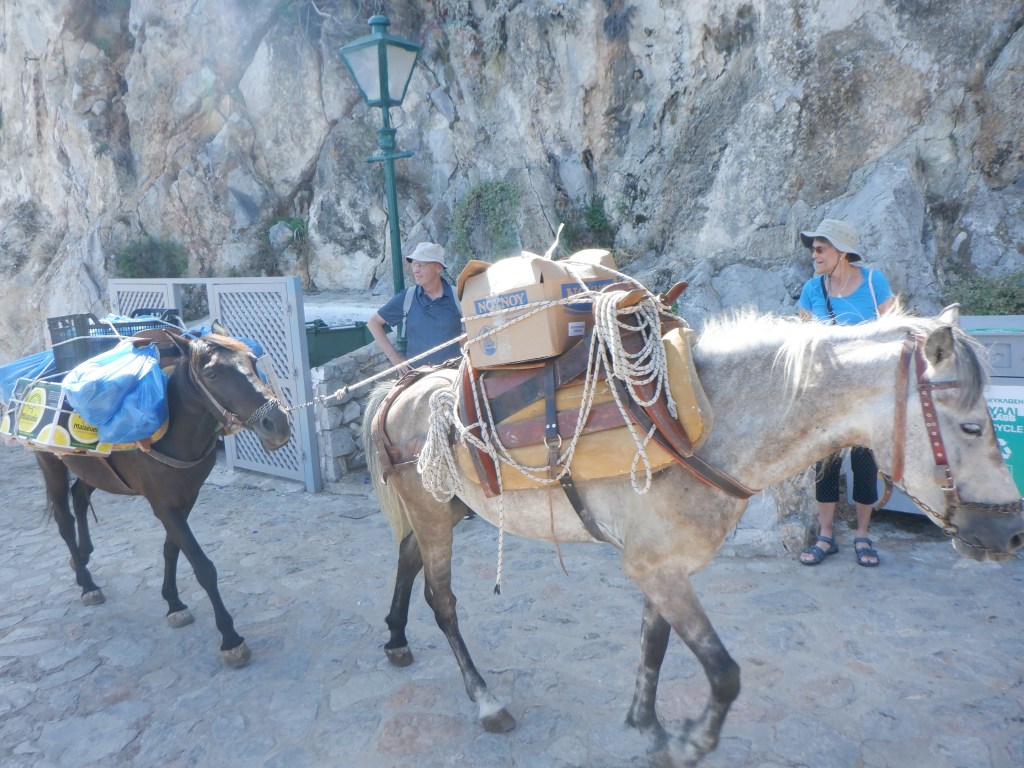 Docking in Greece is somewhat different from most other places.  Here you dock in what is known as a “Med landing”.  A Med landing means dropping your anchor 3-4 boat lengths from the dock then reversing in and tying your stern up to a pier.  Sounds simple – doesn’t it?  Of course, if you are trying this in a strong sideways wind, you will have a host of problems.  Then add the fact that you usually are trying to hit a narrow space between two other boats and now it really gets entertaining.  Every evening the “harbor shows” of inexperienced skippers trying to land their boats, provide endless entertainment for the rest of us.
