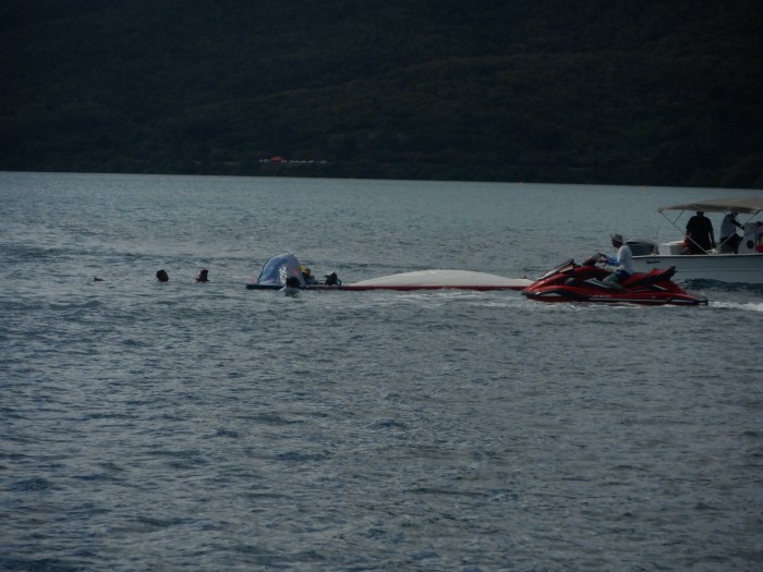 Down by the harbor, there was a tent city, occupied by those whose houses had been completely destroyed. At the town square (what was left of it), there was a soup kitchen, doling out meals three times a day. The wonderfully charming dinghy harbor was no more. The lay behind a concrete seawall and entrance was gained by sailing the dinghy under a raised bridge. Once inside, there was a long wooden dock and a (lively) bar. Next to the bar was a small Italian restaurant where Vinni and I had the best tuna carpaccio we have ever experienced. Everything is gone. The bar walls still stood and a tiny portion of the roof. The little Italian restaurant was gone – only a pile of bricks and wooden poles lay helter-skelter on the grounds. The charming little bridge we sailed under was still there, but the water surge had broken the concrete and moved the bridge to one side. Everything needs to be rebuilt.
