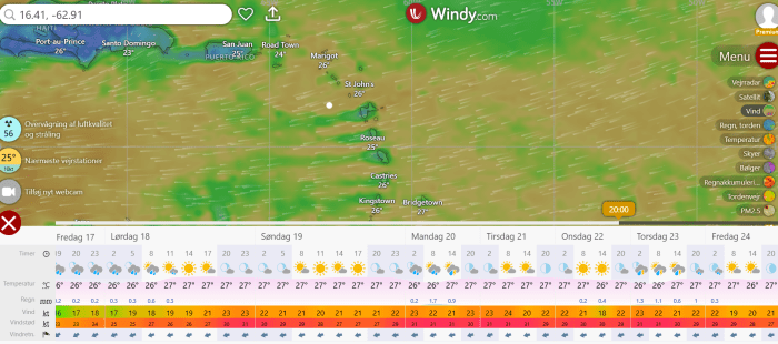 Our third fantastic sailing. The wind was steady at 14-16 hitting us right on the beam and even with our mainsail in the second reef and only showing a half genua, Capri decided to show us just what she is capable of. 83 nm in 12 hours – just under 7 knots per hour and this with several hours in lee of St. Vincent. What a wild ride.