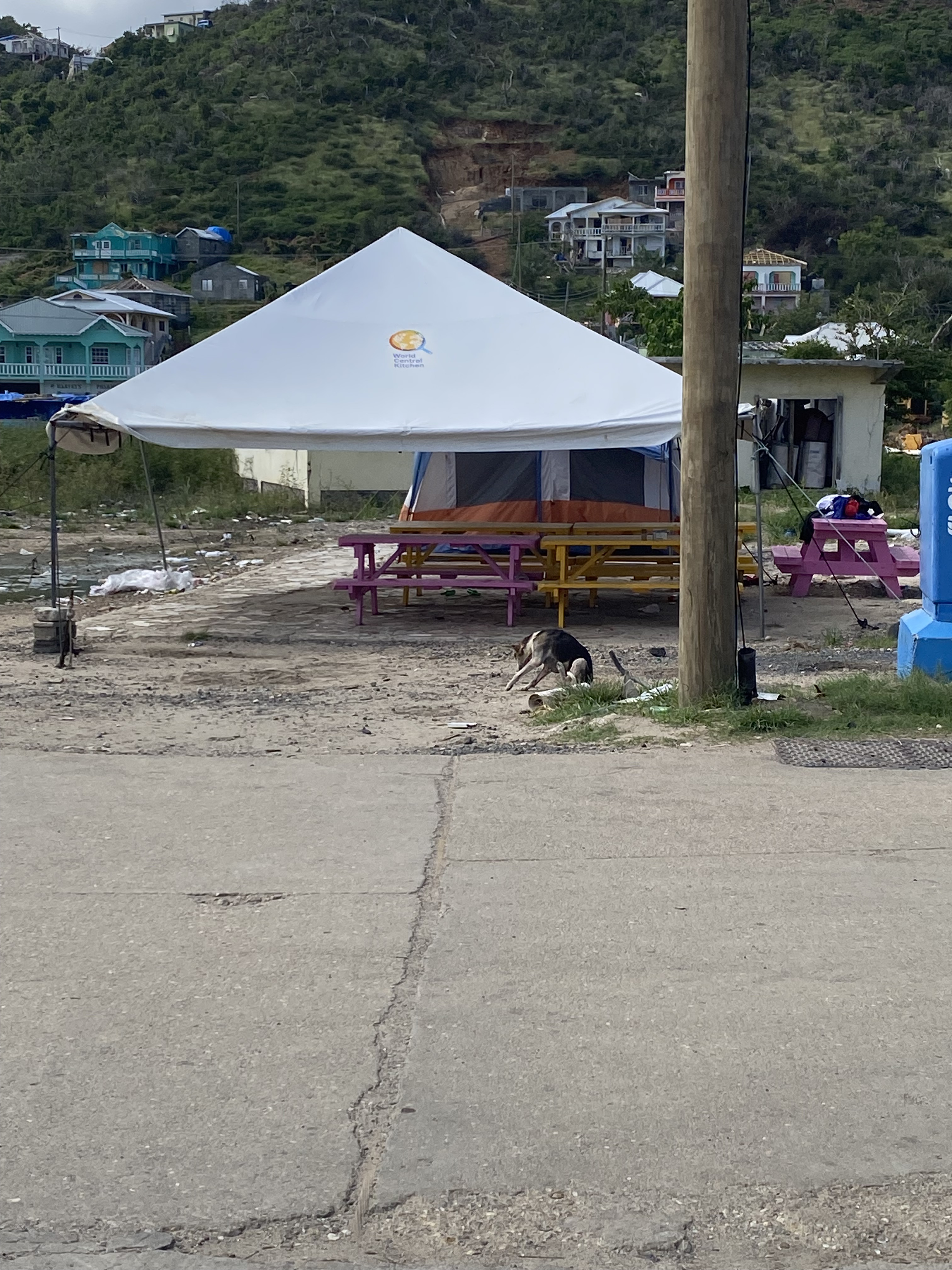 From here, we walked up into what once was a thriving little village. At the square, a sign proclaimed that the government was issuing interest free loans up to 20,000 ECD (Eastern Caribbean Dollars), roughly 8,000USD. That’s wonderful, but it is a loan. USD 8,000 doesn’t buy a lot of building materials and the loan has to be paid back. Paying it back means you have to earn money and here the only way to earn money is by catering to the tourists. But the tourists aren’t coming because there is nothing to see or do. A catch-22 situation. Many have criticized the big corporations and equity funds that seem to own most of the businesses in the Caribbean, but unless they, or someone else comes along with a big bag of money, these islands will live in poverty for many years to come. The government can’t afford to rebuild and neither can the locals.