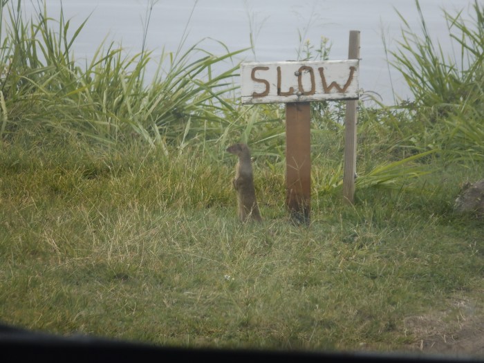 On our drive up here, we see one of the many African apes, distinctive with their green fur on their backs. There are thousands of these apes here in the highlands, descendants of a few apes brought here centuries ago as pets.