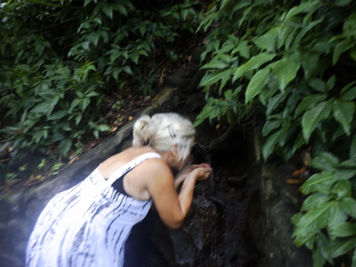 Along the way we visited the “famous” Caribelle Batik, far up in the rainforest highlands. Originally, this was a large sugar plantation with a beautiful main building, which unfortunately burned. Now it is a batik factory with three large workrooms and a good-sized shop. We tour the working areas while a guide explains each step in the process of making batik fabric. The finished products are impressive with many colors and fine designs. These are so good that we buy one.
