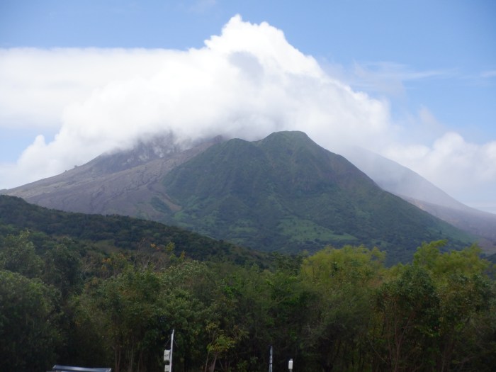 The large volcano, Soufriere on the southern end of Montserrat erupted in 1995 and thereafter there were many smaller eruptions. Larger eruptions followed in 1997, 2003 and 2006. In 2010 there was a devastating eruption where the entire south side of the mountain collapsed and buried the airport and the town around it. On the western side of the island, the Capitol city, Plymouth was buried underneath ash and volcanic lava. The city had been evacuated, but the population had nothing to return to. After this catastrophe, Ireland not only offered economic help to rebuild, but also allowed the population to immigrate to Ireland. Before the eruption, the population was just over 11,000. Today it is only 5000. A major exodus.