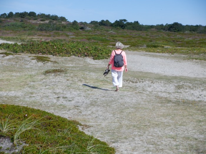 The next morning we left Limfjorden and headed for Anholt, an island in the middle of Kattegat, squarely between Sweden and Denmark.  Anholt is always worth a visit and this time was no exception.  We made the long trek (21 kilometers) out over the desert to the lighthouse and back again.  Sore feet and leg muscles – we are not as young as we once were (sigh).