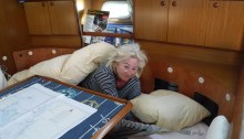 Se sailed through another lock, through a swing bridge and then there was Inverness marina and thank god. Both vinni and I were tired as hell. Vinni hoisted me up the mast so I could make some repairs and then we collapsed into bed and both of us slept the sleep of the dead for…